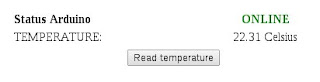 You'll see a webpage with a form and one button. The button is to send a request to Arduino which will reply with a xml file containing the temperature value. The php page will display this value. You can see a screenshot below: